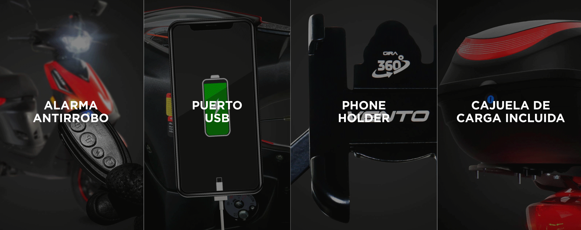 La Vento Axus 170 está equipada para adaptarse a tu estilo de vida en la urbe. Con su puerto USB no tendrás que preocuparte si olvidaste recargar la batería de tu celular, conéctalo mientras disfrutas de una conducción audaz gracias a su transmisión automática.