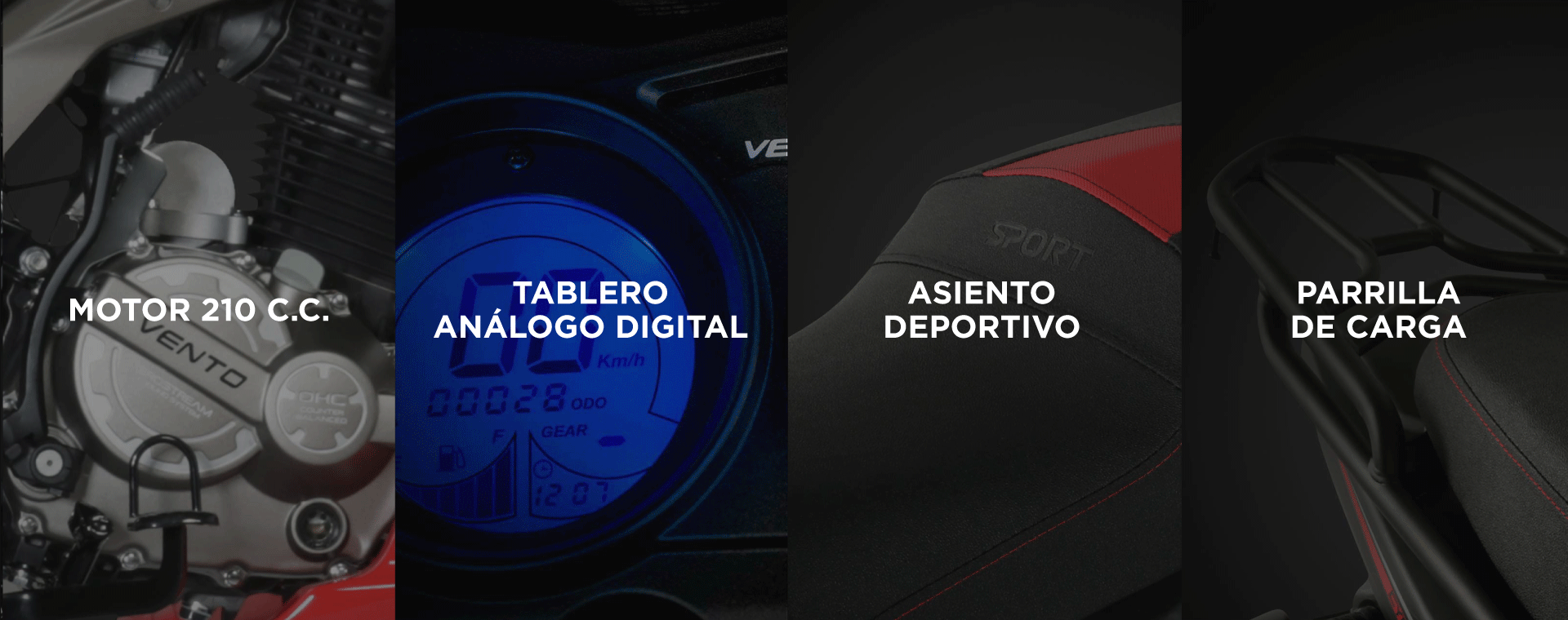 Caminos desconocidos por descubrir, nuevos horizontes por conquistar. La Vento Cyclone 210 te lleva a disfrutar la libertad. Enciende la aventura, lleva contigo lo que necesites en su parrilla de carga con portacasco. Domina las calles con estilo y lleva tu experiencia de conducción a otro nivel, su diseño ligero y ágil es ideal para rodar en la urbe. En cada giro del acelerador, siente una tormenta de emociones gracias a la potencia de su motor impulsado por 18 HP. Tu #PoderEnAcción al conducir.