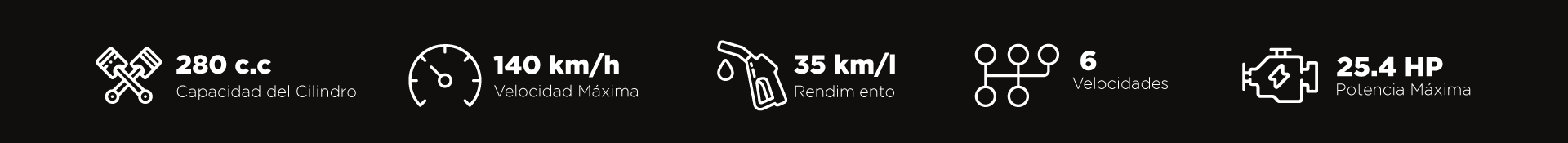 Poseedora de uno de los desempeños más sobresalientes de la marca y del mercado, la nueva Vento Hyper 280 con su potente motor de 280 c.c. fue hecha para hacerte experimentar una sensación de poder indescriptible con sus 25.4 HP acompañados por su transmisión manual de 6 velocidades y su sistema de enfriamiento por aceite.