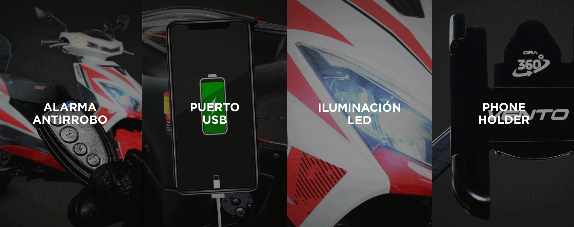 La nueva Vento Spirit 170 ZX posee una visible forma estilizada y esbelta que la dota de un dinamismo y movilidad sobresalientes en todas sus líneas. Su moderno e incisivo diseño deportivo no pasa desapercibido: proporciones simétricas y anguladas, moderno guardabarros sobre la rueda delantera y gran faro con luz frontal completamente LED te harán resaltar en todos tus viajes.